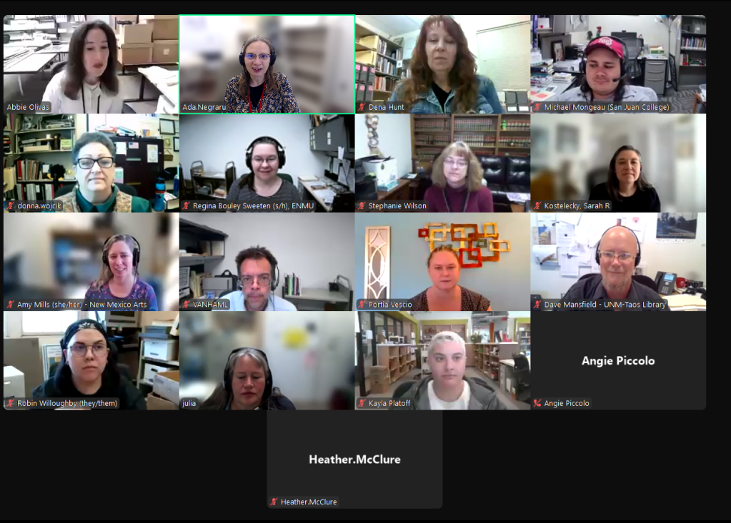 Welcome to our SIG page! The Archives & Archivists SIG provides a home for those who identify as archivists or who are assigned archival and records management tasks in their work. By archivists, we include anyone who self identifies as an archivist, librarian, records manager, curator, clerk, etc. Archives & Archivists works to collectively organize archivists; create networking opportunities; inspire collaborative projects; and create more archival-specific training. We represent the interests of individuals working in public, private, non-profit, tribal, and corporate environments in New Mexico. Formed in March 2021, our SIG membership is comprised of over 95 individuals state-wide interested in collaborating on archives-related opportunities and challenges we have here in New Mexico.
